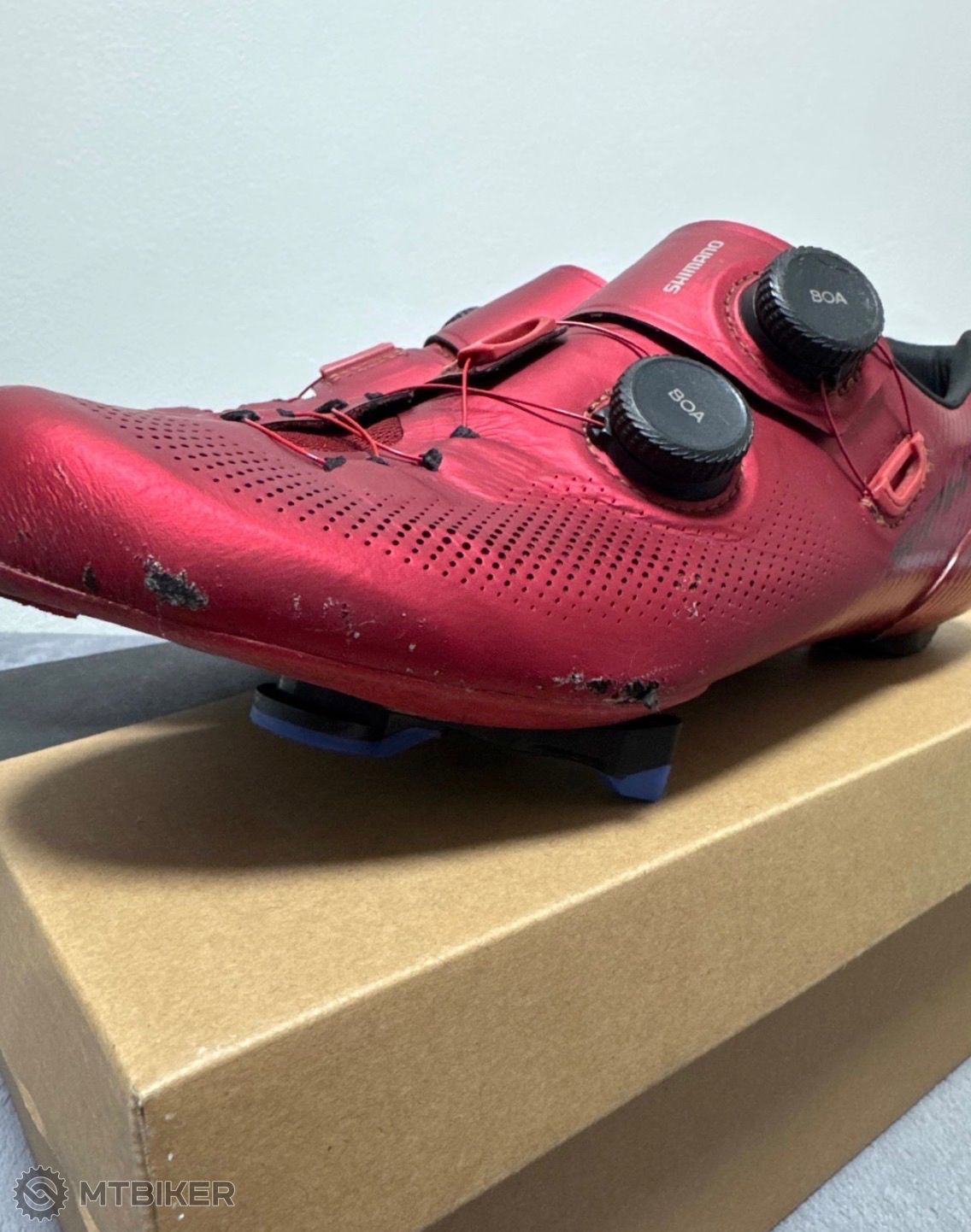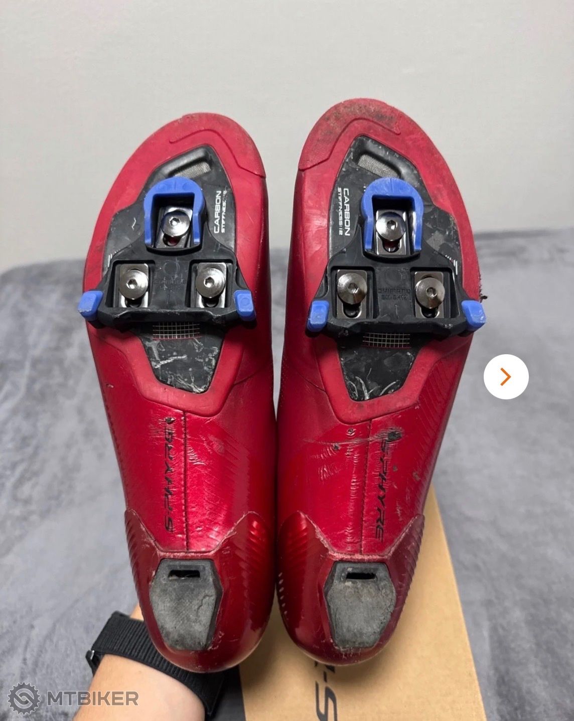 Zdravím, predám rok jazdené cestné tretry Shimano SH-RC903 veľ.43, červené.Na tretrách su vidno známky bežného používania, ale to je iba vizuálna vada, inak im nič nie je.