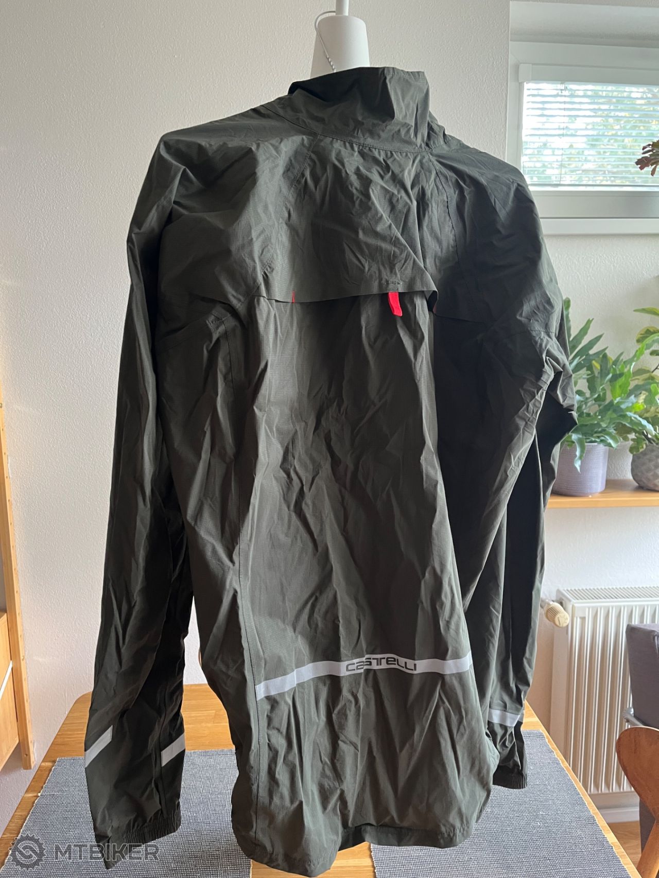 Raz použitá v suchých podmienkach. Nesedí mi veľkosť. 2,5-vrstvový materiál Deluge Light s vodným stĺpcom 10.000 mm. Dostatočná miera pružnosti pre výborné prispôsobenie sa jazdeckej pozícii. Mimo prípad núdze, zbalená zaberie polku vrecka dresu. Vrecko na skladanie je integrované do vetracej sieťoviny na chrbáte. Nepremokavý zips a prelepené švy zadržia všetku vodu. Reflexné prvky viditeľné z 360°. Hmotnosť: 149g. (L)