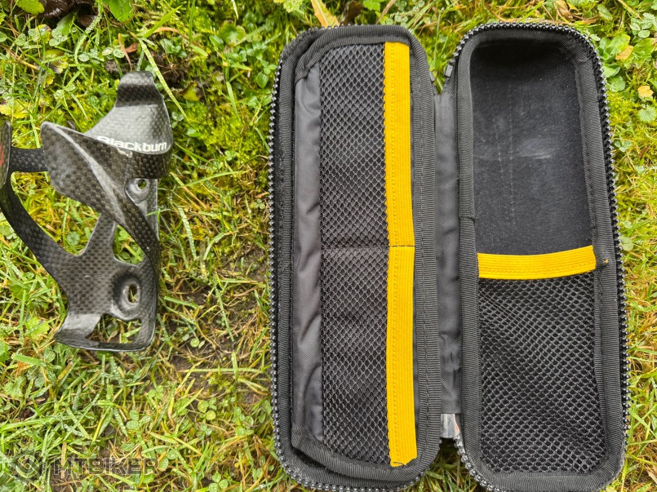 Celokarbonový košík Blackburn spolu s pouzdrem na vše potřebné. Možno i jednotlivě.